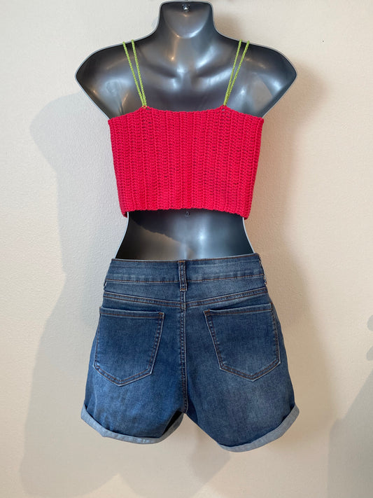 Hand Crocheted Cropped Tank Top In Super Soft 100% Cotton - Holiday Red