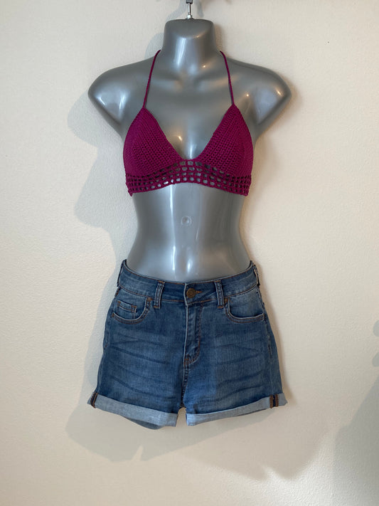 Hand Crocheted Lustrous Jewel-tone Magenta String Bikini Bralette in 100% Cotton