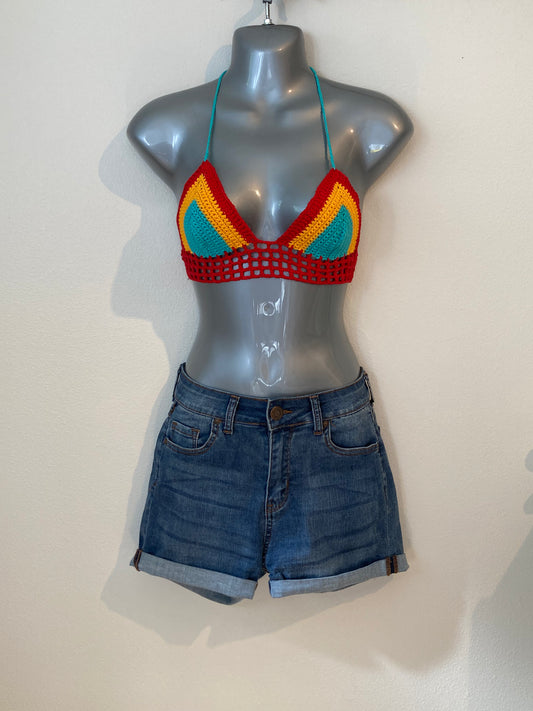 Hand Crocheted Bright Bold Fun Bikini Bralette in 100% Cotton