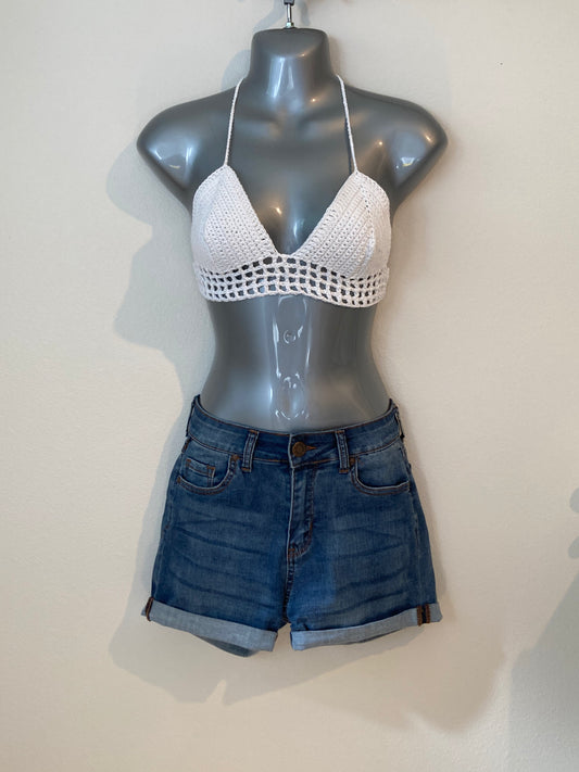 Hand Crocheted Bright White Sweet String Bikini Bralette in 100% Cotton