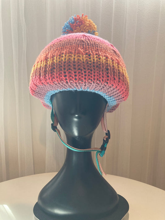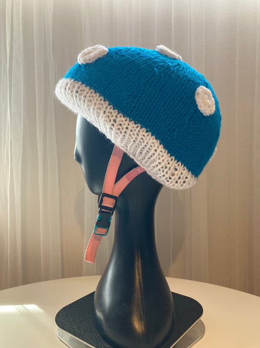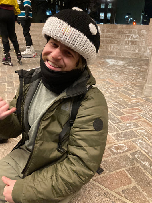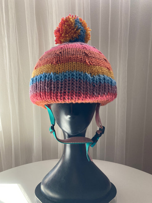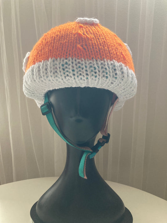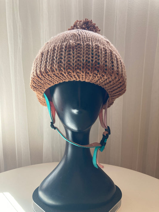 Add one of my custom beanie covers on top of your helmet - to stand out and be seen while you're being safe.