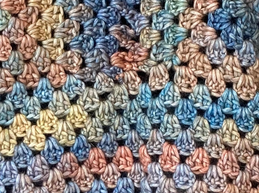 Hand Crocheted Dappled Earth-tone Watercolor Hexagon Cardigan