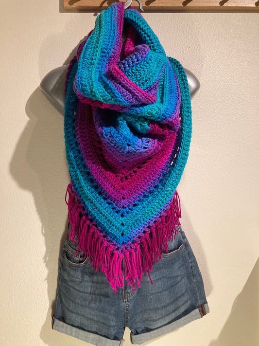 Hand Crocheted Bright Neon Mermaid Tones Hooded Cowl Shawl
