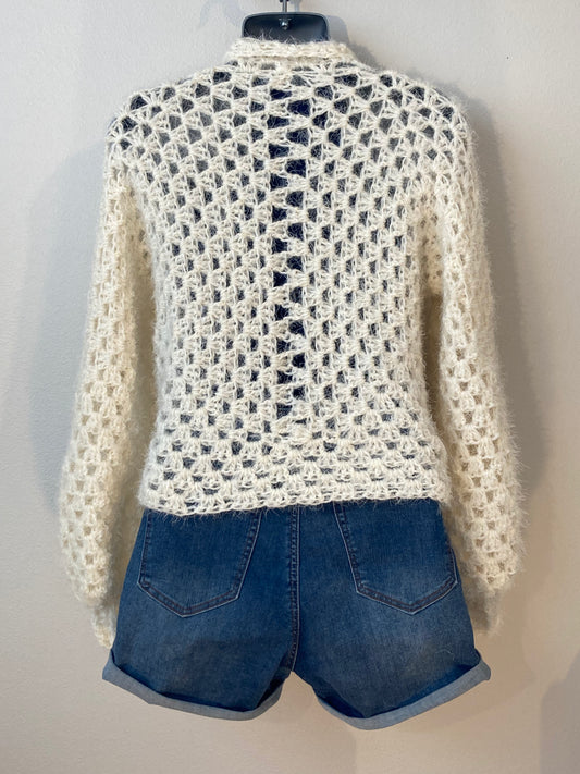 Hand Crocheted Super Soft Fuzzy Cream Hexagon Cardigan