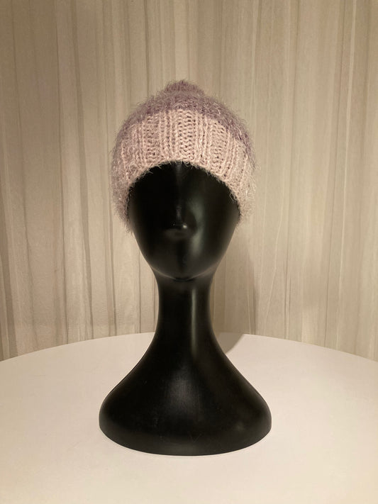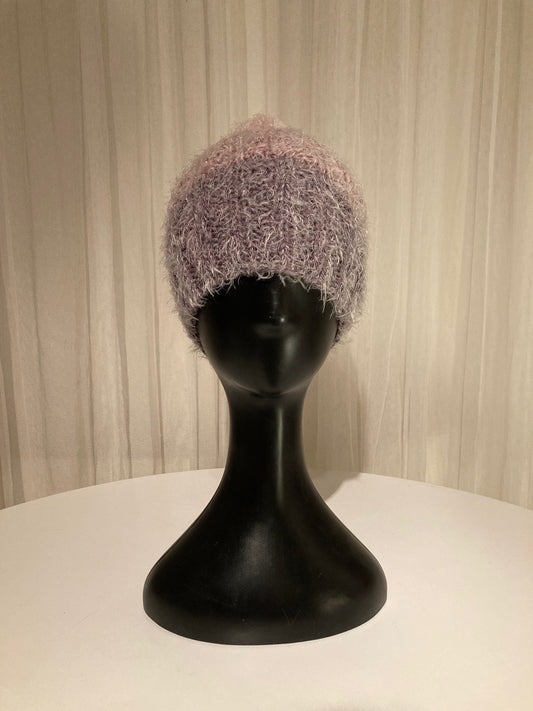 Handknitted Beanie in Super Soft Fuzzy Muted Plum and Lavender Blush