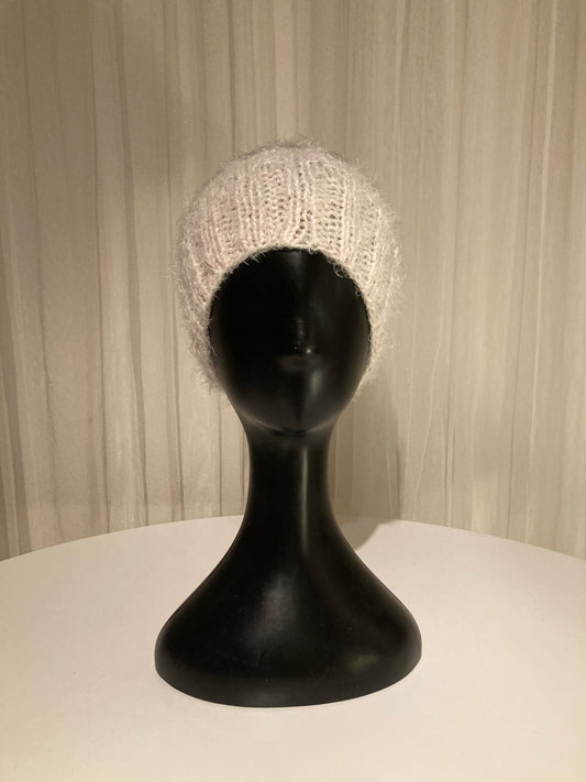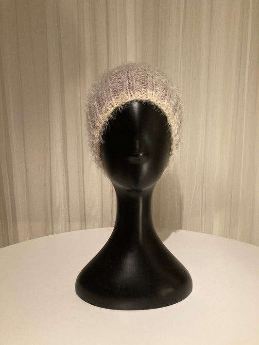 Handknitted Beanie in Super Soft Fuzzy Cool Neutral Cream and Warm Grays