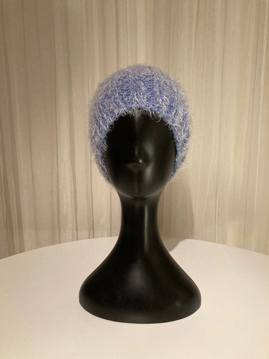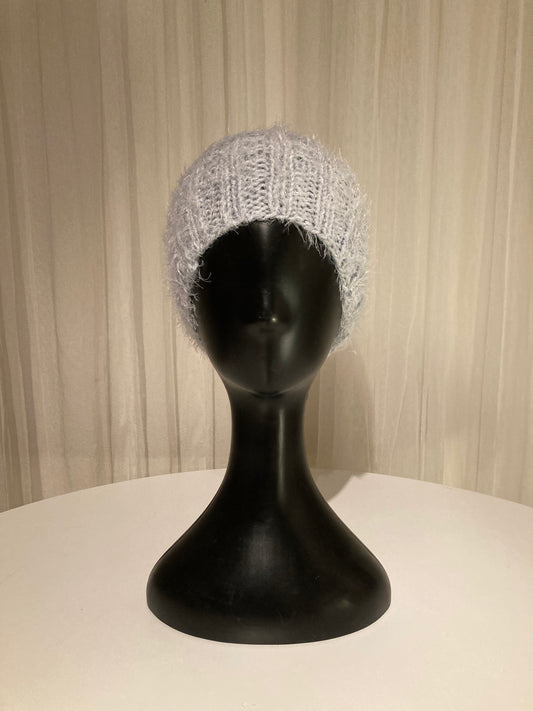 Handknitted Beanie in Super Soft Fuzzy Muted Shades of Light and Slate Blue