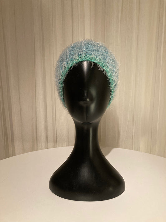 Handknitted Headband in Super Soft Fuzzy Bright Shades of Teal and Medium Blue