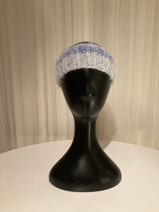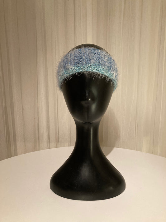 Handknitted Headband in Super Soft Fuzzy Muted Shades of Light and Slate Blue
