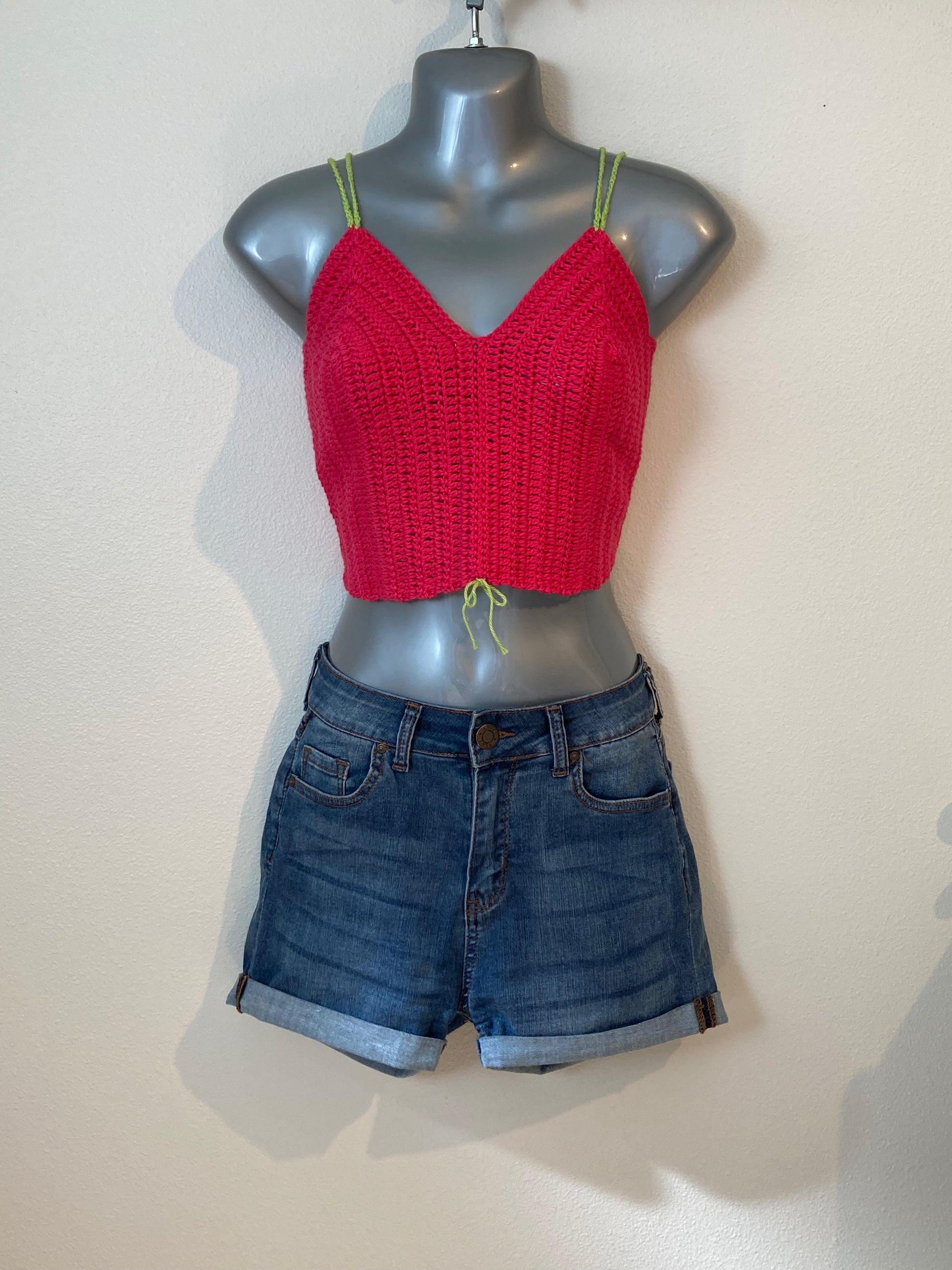 Hand Crocheted Cropped Tank Top In Super Soft 100% Cotton - Holiday Red